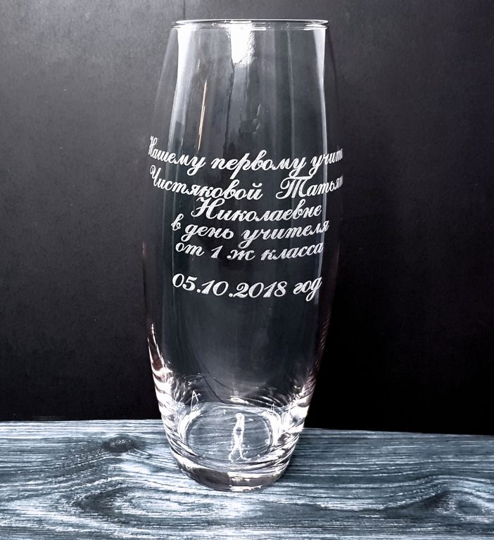 Гравировка на вазе "С юбилеем"; Подарок от коллег с уважением и любовтью!