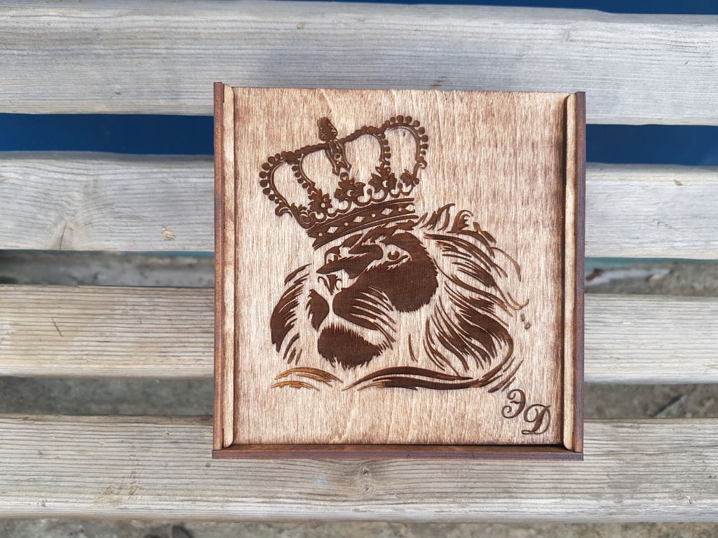 Деревянная подарочная упаковка с инициалами "Лев"