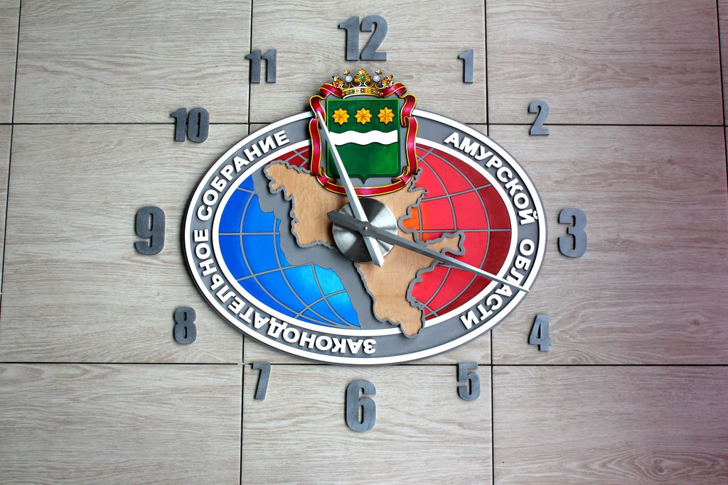 Многомлойные настенные часы по индивидуальному заказу "законодательное собрание амурской области"; Размер основания 60х80 см