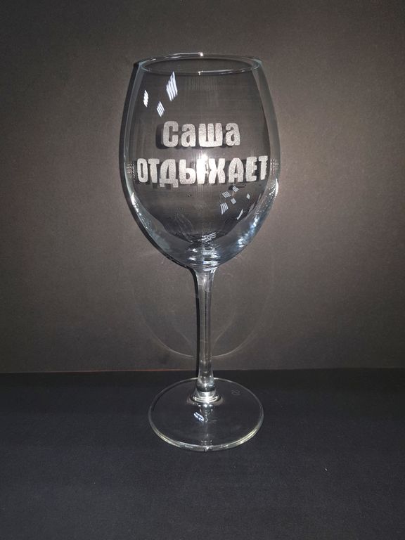 Лазерная гравировка на бокалах в Благовещенске. Бокал с гравировкой Саша отдыхает. Любые Имена, любые надписи. По всем вопросам отбращайтесь в отдел продаж